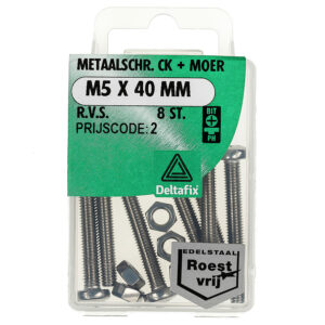 METAALSCHROEF CK + MOER RVS A2 M5 X 40 MM DIN 7985 DIN 934 8ST