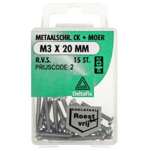METAALSCHROEF CK + MOER RVS A2 M3 X 20 MM DIN 7985 DIN 934 15ST