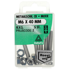 METAALSCHROEF CK + MOER RVS A2 M6 X 40 MM DIN 7985 DIN 934 5ST