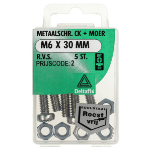 METAALSCHROEF CK + MOER RVS A2 M6 X 30 MM DIN 7985 DIN 934 5ST