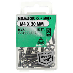METAALSCHROEF CK + MOER RVS A2 M4 X 20 MM DIN 7985 DIN 934 15ST