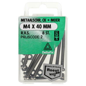METAALSCHROEF CK + MOER RVS A2 M4 X 40 MM DIN 7985 DIN 934 8ST
