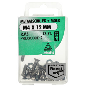 METAALSCHROEF PK + MOER RVS A2 M4 X 12 MM DIN 965 /DIN 934 13ST