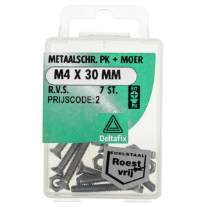 METAALSCHROEF PK + MOER RVS A2 M4 X 30 MM DIN 965 /DIN 934 7ST