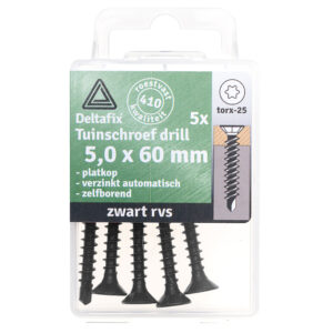 SPAANPLAATSCHROEF PK TX MET NIBS BOORPUNT ZWART RVS410 5.0 X 60 MM 5ST