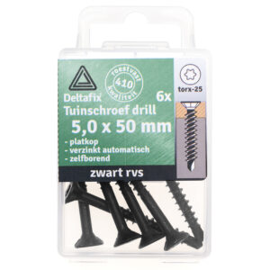 SPAANPLAATSCHROEF PK TX MET NIBS BOORPUNT ZWART RVS410 5.0 X 50 MM 6ST