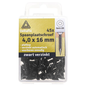 SPAANPLAATSCHROEF PK TX MET NIBS+SNIJPUNT ZWART VZ 4.0 X 16 MM 45ST