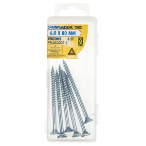 SPAANPLAATSCHROEF PK TX MET NIBS+SNIJPUNT VZ 6.0 X 80 MM 6ST