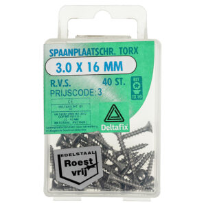 SPAANPLAATSCHROEF PK TX RVS A2 3.0 X 16 MM 40ST