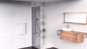DOUCHE PLANCHET, CHROOM, HOEKIG, OM TE LIJMEN OF SCHROEVEN