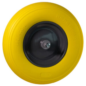 WIEL 400X8 GEEL SOFTWIEL METAAL KOGELLAGERSS 13 CM AS (VERNIEUWD ART. VOOR CW123/CW128)