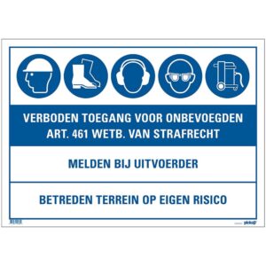 BOUWPLAATSBORD BOUWPLAATS BETREDEN OP EIGEN 500X700 MM