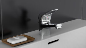 OCEAN REGENDOUCHE SET MET THERMOSTATISCHE KRAAN, CHROOM/ANTRACIET, MET PLANCHET