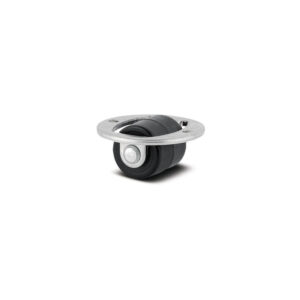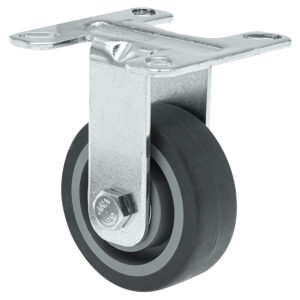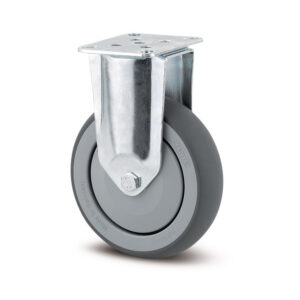 BOKWIEL, VORK VAN GEPERST STAALPLAAT, VERZINKT-CHROMATISEERD, PLAATBEVESTIGING. WIELKERN VAN POLYPROPYLEEN MET GRIJZE NIET-STREPENDE TENTEPRENE THERMOPLASTISCHE RUBBERBAND, WIELNAAF OP PRECISIEKOGELLAGER, MET AFDEKKAPPEN, ,