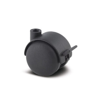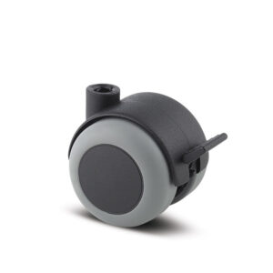 ZWENKWIEL MET DUBBELE REM, VORK VAN GEPERST STAAL, VERZINKT, DUBBELE KOGELDRAAIKRANS IN DE ZWENKKOP, PLAATBEVESTIGING. WIELKERN VAN POLYPROPYLEEN MET GRIJZE NIET-STREPENDE TENTEPRENE THERMOPLASTISCHE RUBBERBAND, WIELNAAF OP PRECISIEKOGELLAGER, MET A