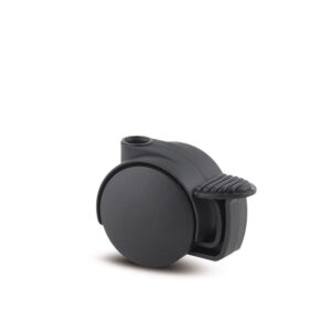 ZWENKWIEL MET DUBBELE REM, VORK VAN GEPERST STAAL, VERZINKT, DUBBELE KOGELDRAAIKRANS IN DE ZWENKKOP, WIELAS GESCHROEFD, STOFAFDICHTING, PLAATBEVESTIGING. WIELKERN VAN POLYAMIDE MET NIET-STREPENDE, ELASTISCHE RUBBERBAND, WIELNAAF OP ROLLAGER