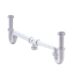 MCALPINE GOOTSTEENAFVOER, DUBBEL, +SIFON, PP, WIT, 1½” X 1½”