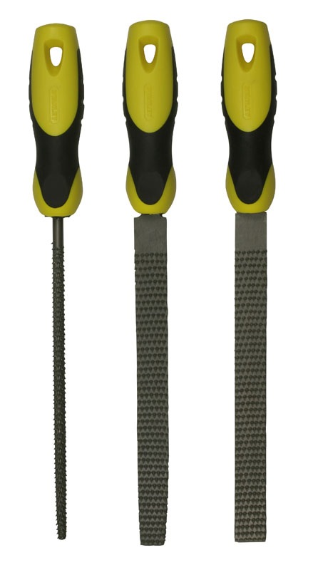 Hoogwaardig carbonstaalErgonomische bimateriaal handgreepInhoud: ronde, halfronde en platte rasp