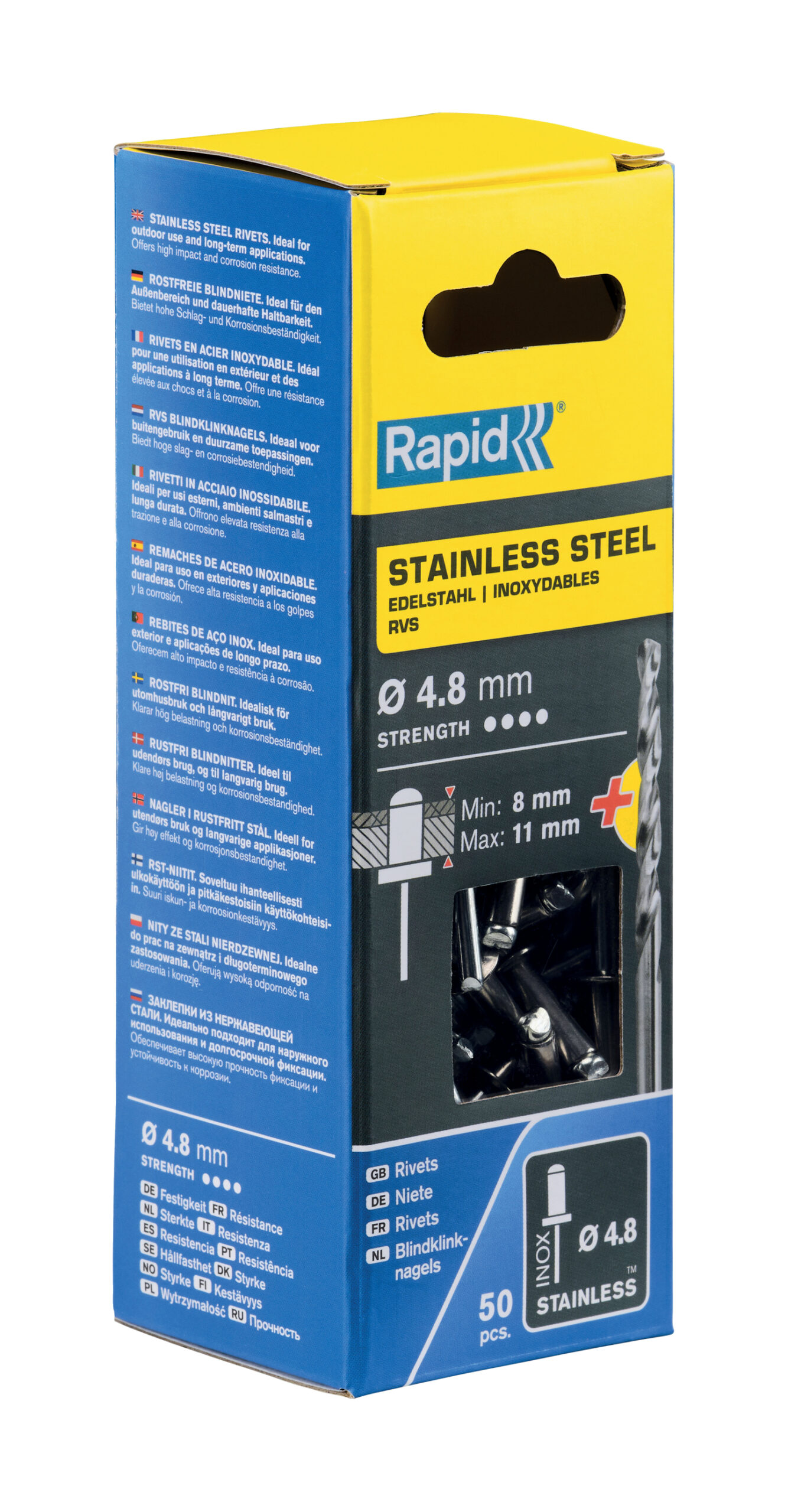 4,8X14MM RVS BLINDKLINKNAGELS 50 ST. + BOOR, BOX
