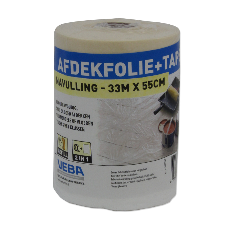 VEBA Afdekfolie met tape – Afmeting 33 mtr x 55 cm – Navulling – Voor eenvoudig en snel afdekken van meubels en vloeren