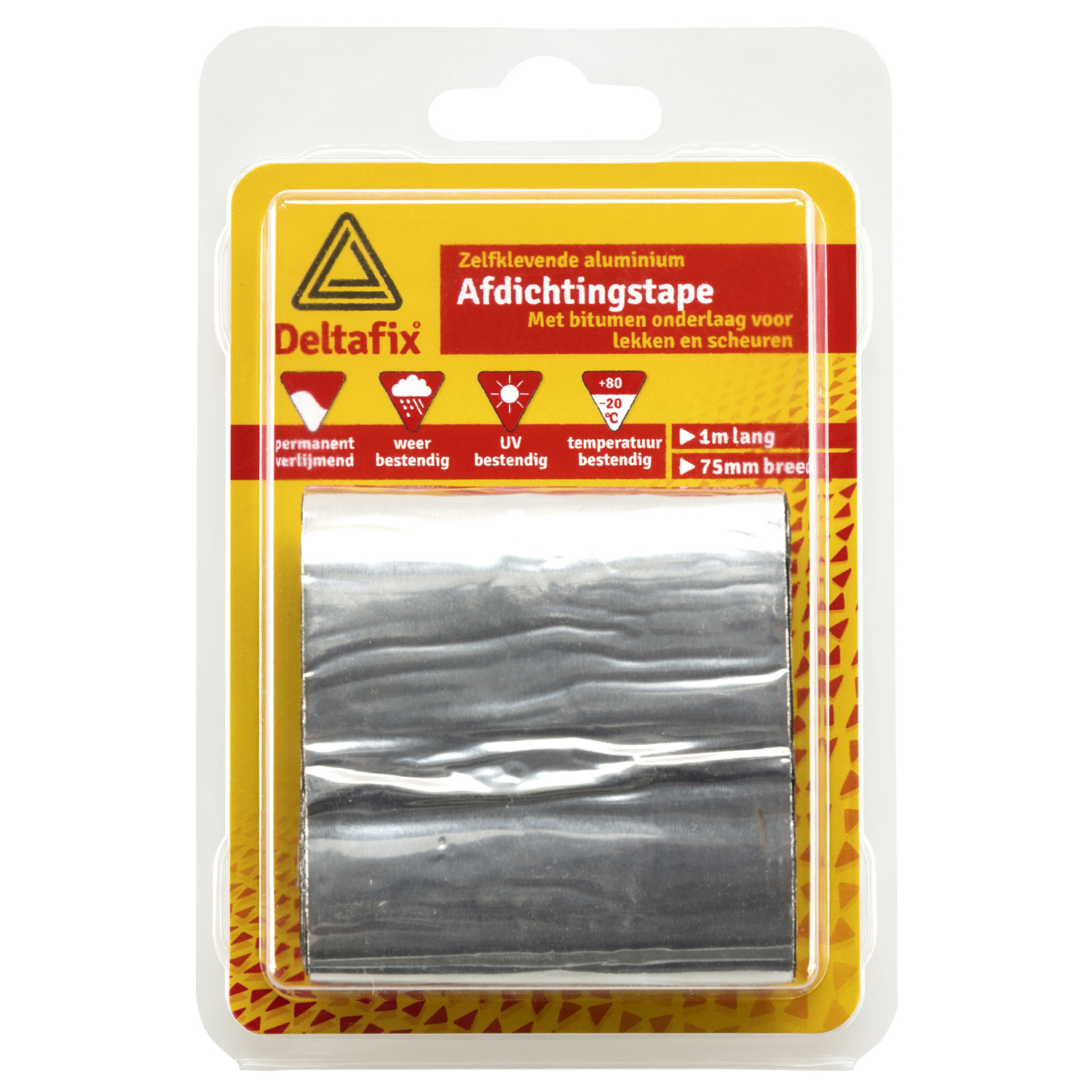 Deltafix zelfklevende afdichtingstape is een aluminium tape met een bitumen onderlaag. De tape is zeer geschikt voor het repareren en waterdicht maken van bijvoorbeeld daken, dakgoten, afvoerpijpen, buizen, schoorstenen, golf- en profielplaten en dakkapellen.Ook is de tape geschikt voor het afdichten van gegalvaniseerde oppervlakken en verbindingen, zoals van auto’s en caravans.De tape is ongevoelig voor hoge en lage temperaturen, UV-bestendig en kan tegen alle weersinvloeden. De tape zal dus niet verweren of krimpen. De tape hecht op steen, beton, lood, zink, aluminium, asfalt en hout.- permanent verlijmend- weerbestendig- temperatuurbestendig (-20°C – 80°C)- UV-bestendig