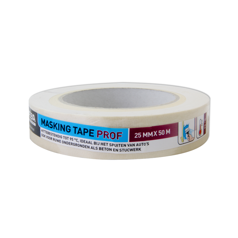 VEBA Afplaktape professioneel – Afmeting 25 mm x 50 mtr – Hittebestendig tot 95 °C – Ideaal bij het spuit van auto?s – Ook voor ruwe ondergronden