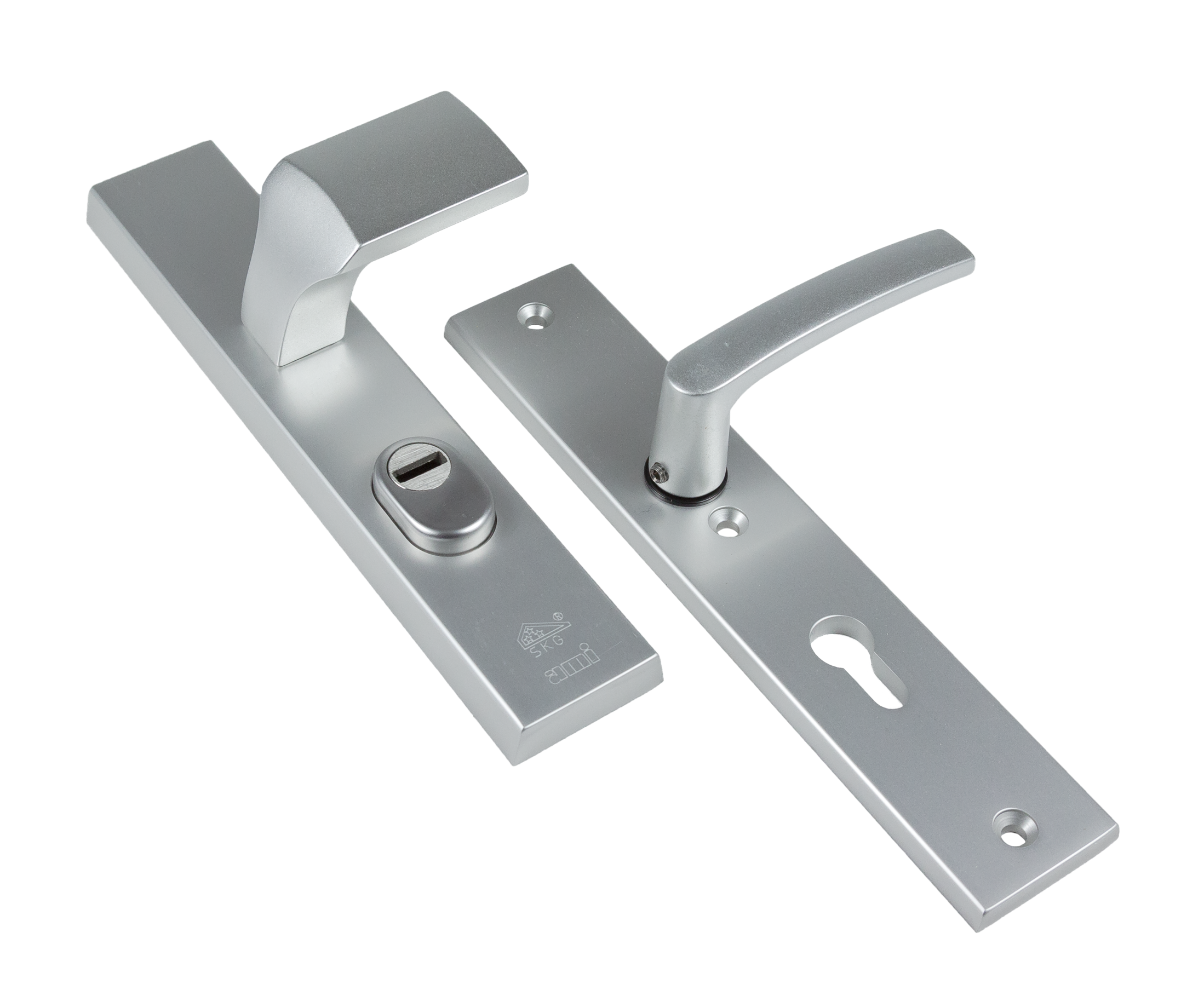| inclusief | buiten- en binnenschild, gatdeel blokmodel deurkruk 332 M6, knop 144 VARO Quickpuntschroef en drie RVS schroeven M6 |