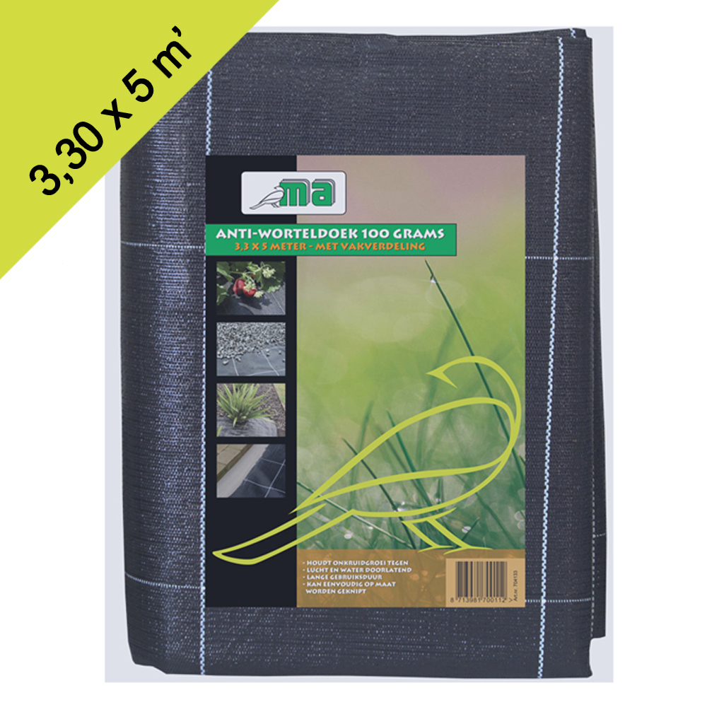 Home › Schoeisel, kleding en bescherming › Folies en Dekzeilen › ANTI-WORTELDOEK KLEINVERPAKKING 3,30 X 5 MTR PAKKET