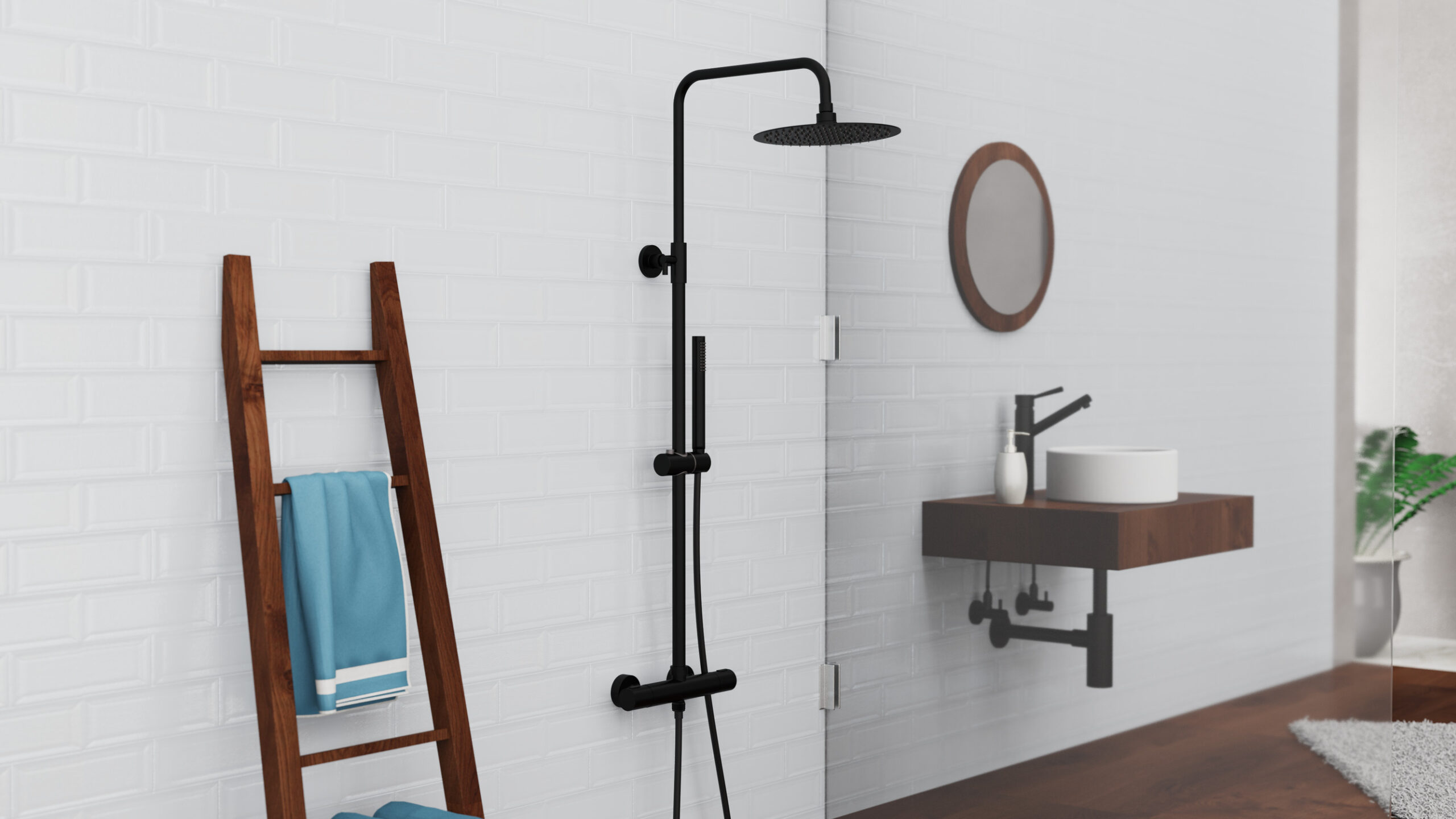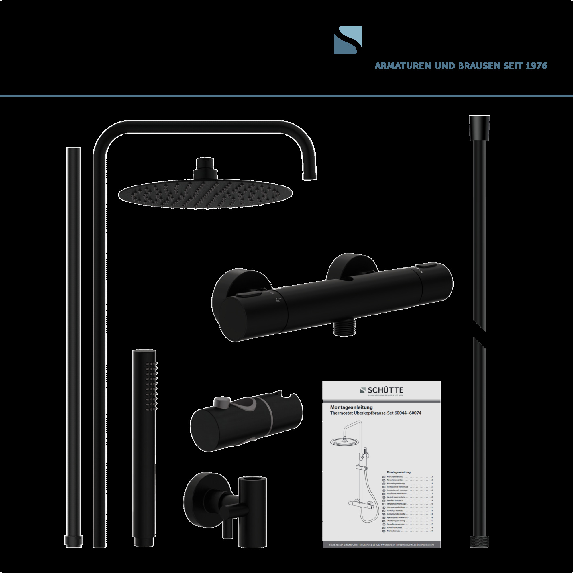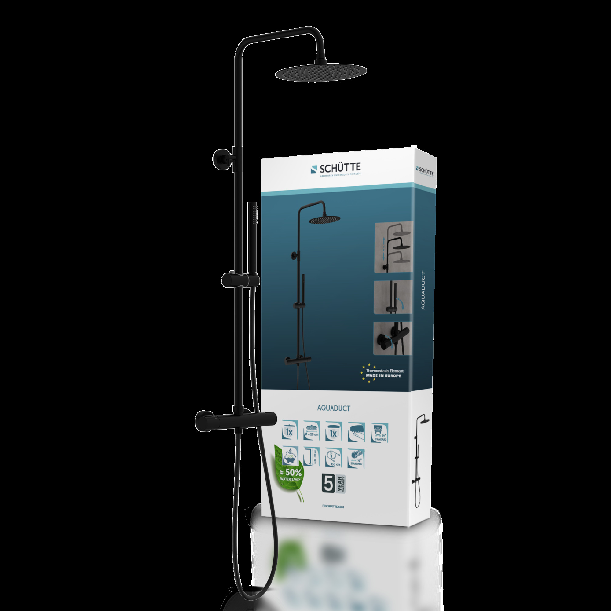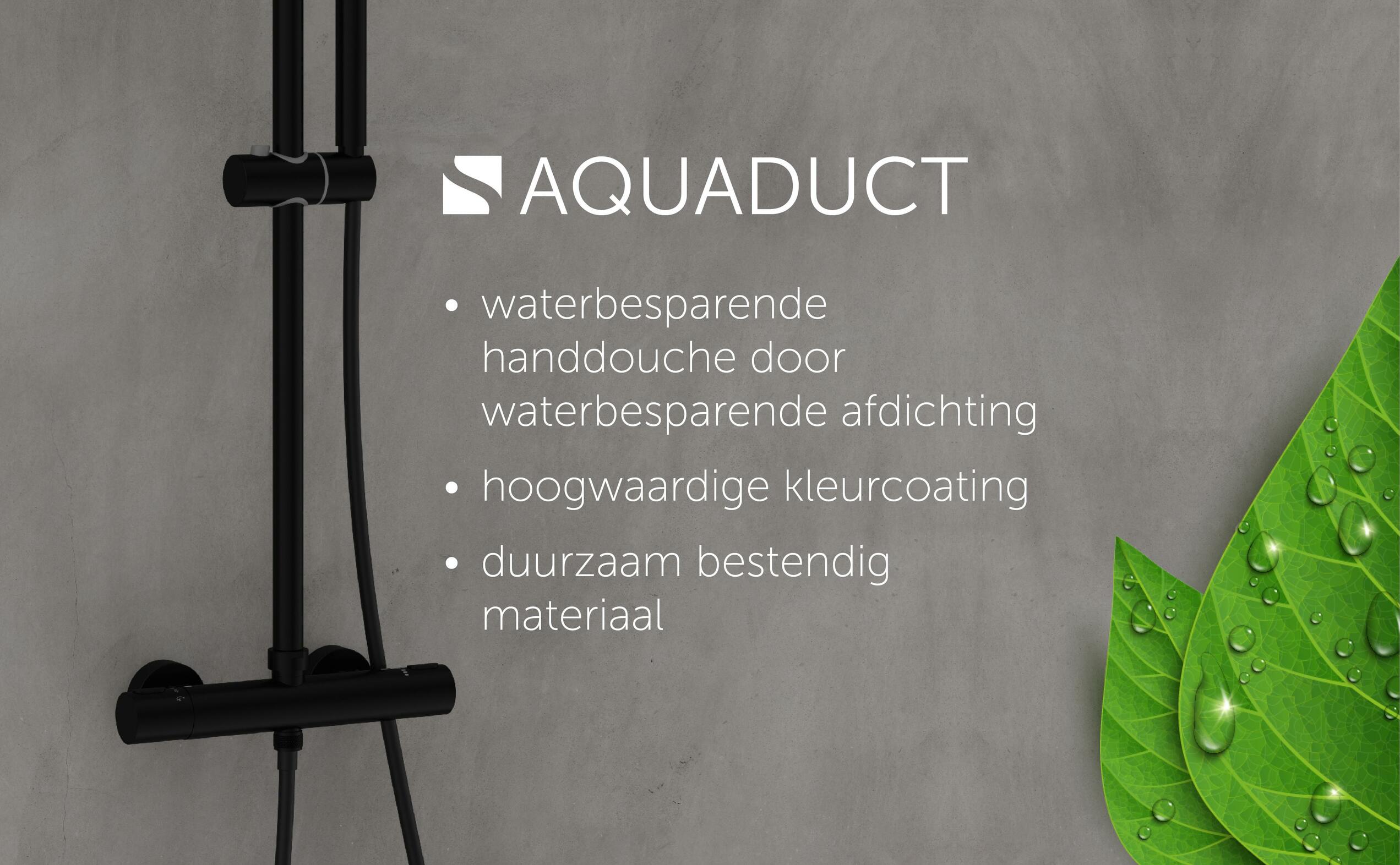 AQUADUCT REGENDOUCHE SET MET THERMOSTATISCHE KRAAN, MAT ZWART