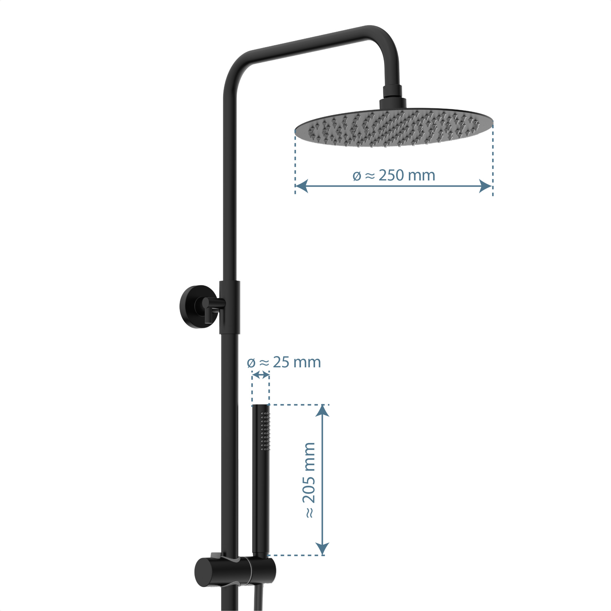 AQUADUCT Regendouche set met thermostatische kraan, mat zwart • ½” (Ø ca. 1,9 cm) doucheslang verbinding • antikalk nozzles • Traploze positionering van de douchehouder • super dunne hoofddouche van roestvrij staal • incl. handdouchehouder (met drukknop om op de stijgbuis te bewegen) • incl. waterbesparende afdichting • knikbestendige kunststof doucheslang in mat zwart • lengte: ca. 150 cm • in hoogte verstelbare RVS douchestang • Garantie: 5 jaar