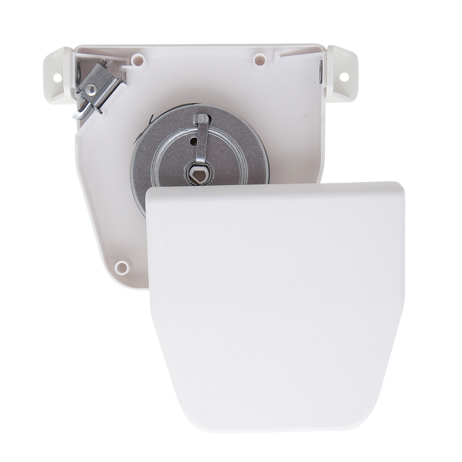 Witte bandopwinderset inclusief doorvoerset ZONDER band. Geschikt voor rolluiken, screens en uitvalschermen.- afmeting art.nr. 3539: 159(h) x 121(d) x 27(b) mm- afmeting art.nr. 3543: 191(h) x 172(d) x 31(b) mm- kunststofbehuizing met metalen binnenwerk- inclusief Nederlandse montagehandleiding- met reeds voorgespannen veer- scharnierend- art.nr. 3539 is geschikt voor maximaal 5 meter optrekband van 14 tot 15mm breed- art.nr. 3543 is geschikt voor maximaal 11 meter optrekband van 14 tot 15mm breed
