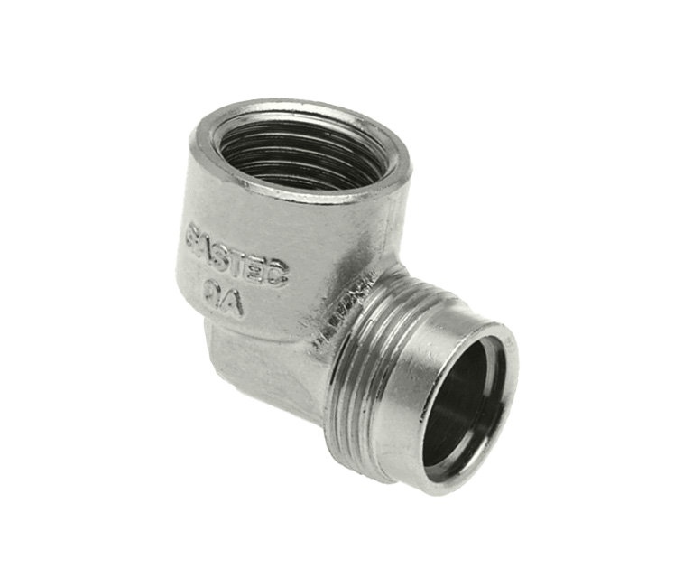 Haaks aansluitstuk voor gas. Binnendraad x M24.