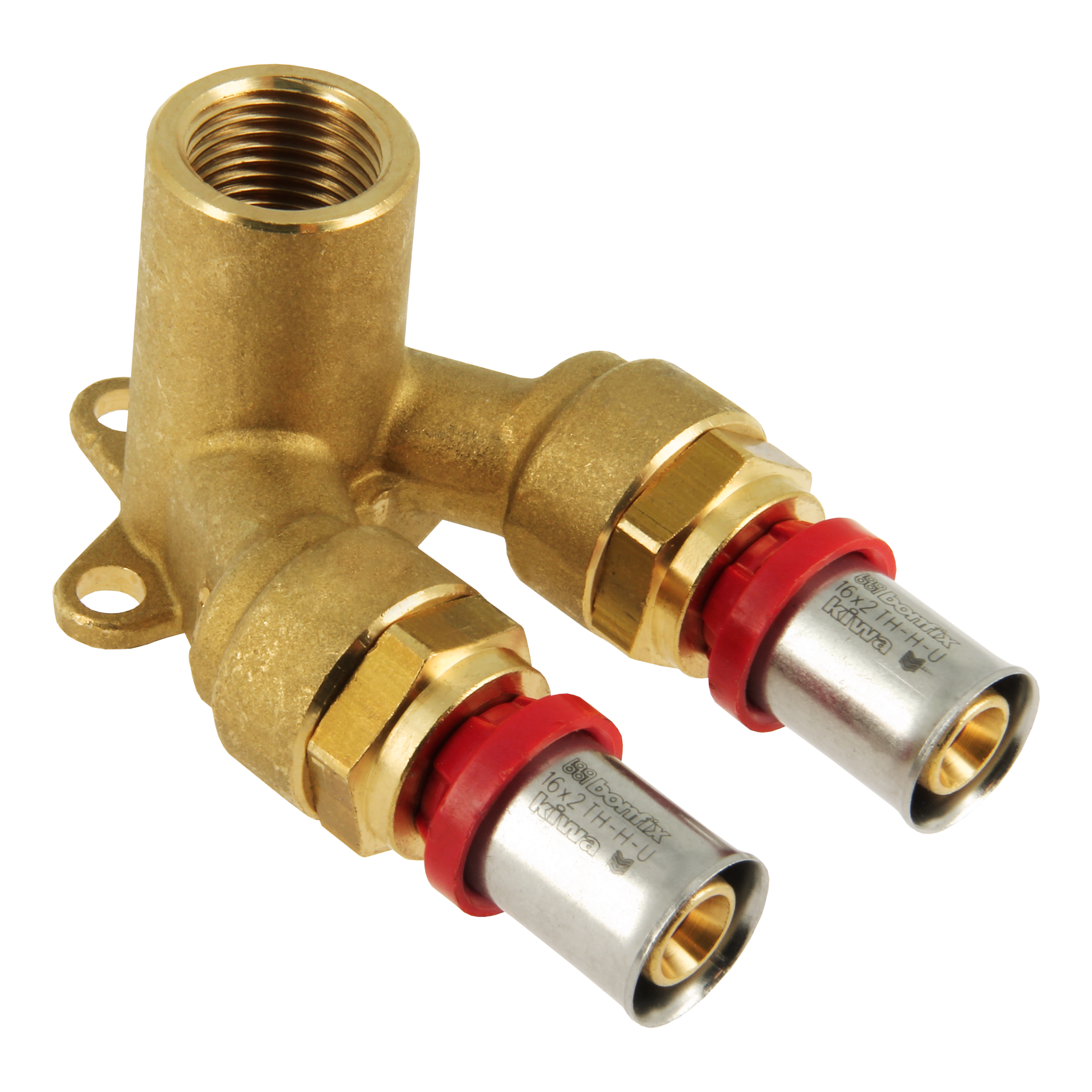 BONFIX Alu-pers muurpl. dubbel 16 x 1/2 x 16 1st. Doorstroom muurplaat. Alu-pers x binnendraad x alu-pers.