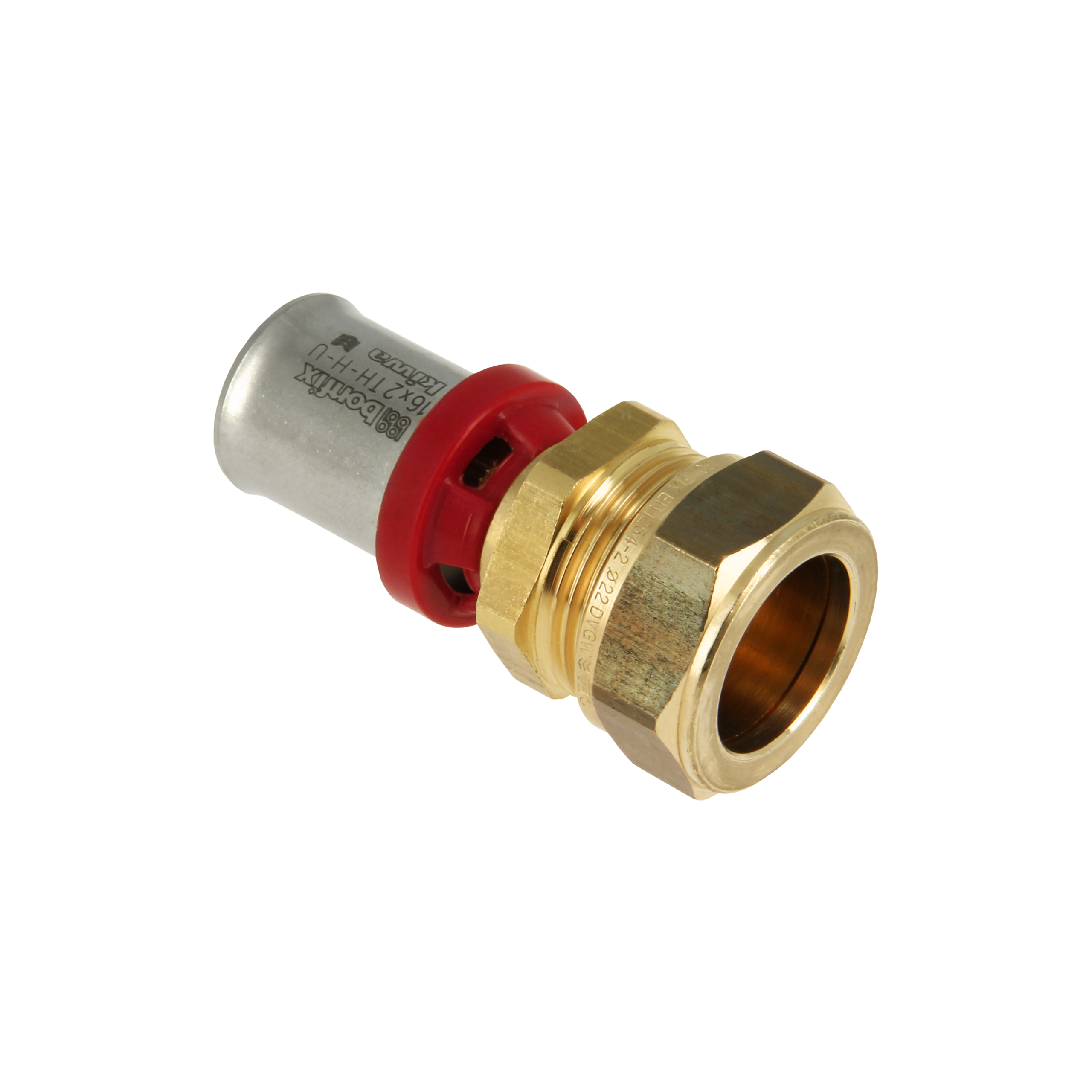 BONFIX Alu-pers rechte koppeling 16 mm x 22 mm knel 1st. Rechte verloopkoppeling. Alu-pers x knel.