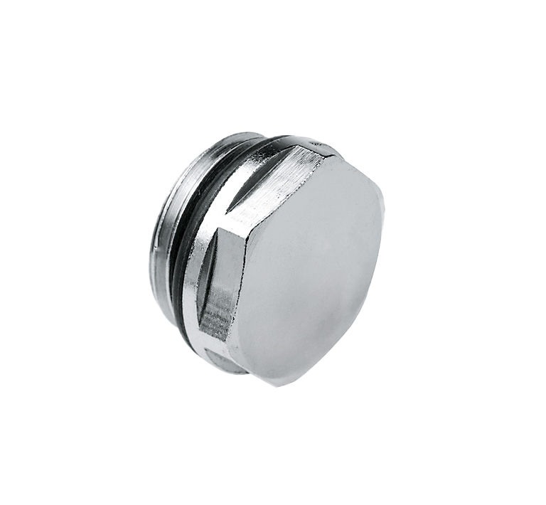 Blindstop messing vernikkeld. Met EPDM O-ring afdichting 1 x buitendraad.