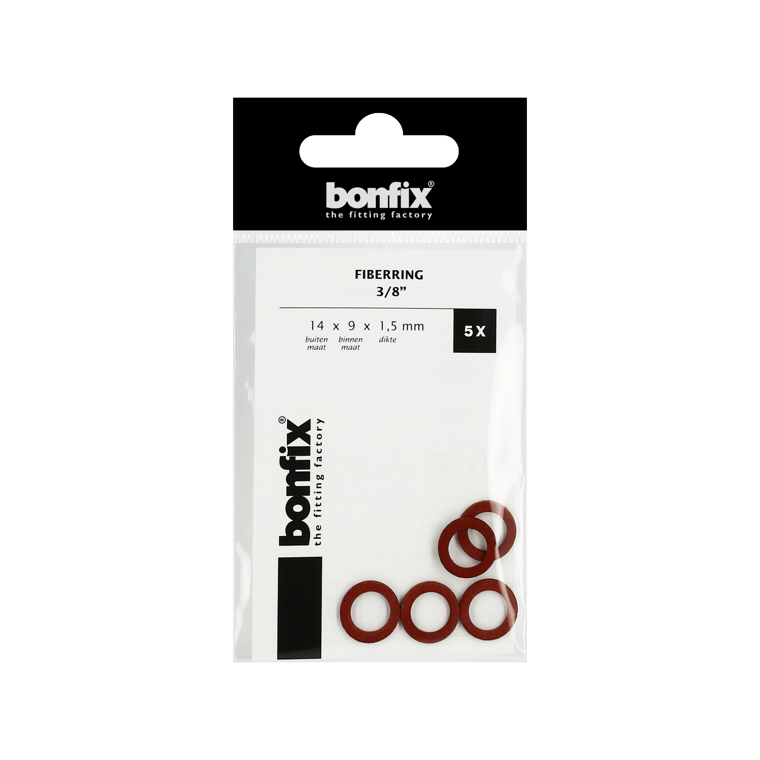 BONFIX Fiberring 3/8" (14 x 9 x 1,5 mm) 5 stuks Fiberringen. Buitenmaat x binnenmaat x dikte.