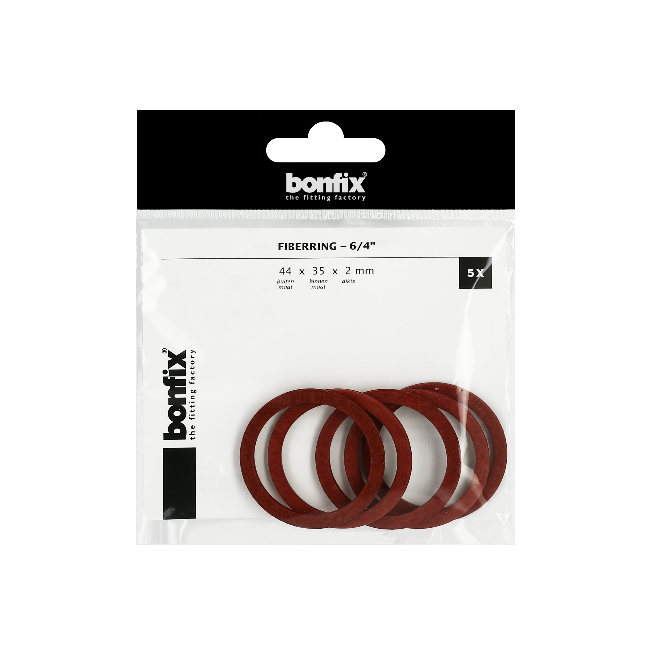 BONFIX Fiberring 6/4" (44 x 35 x 2 mm) 5 stuks Fiberringen. Buitenmaat x binnenmaat x dikte.