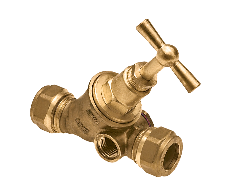 Stopkraan met bovendeel met aftapgelegenheid. 2 x knel.