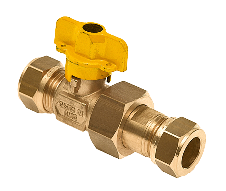 BONFIX messing gaskogelkraan 15 mm knel x 15 kop.Knel 1st Gaskogelkraan. Knel x koppeling knel.