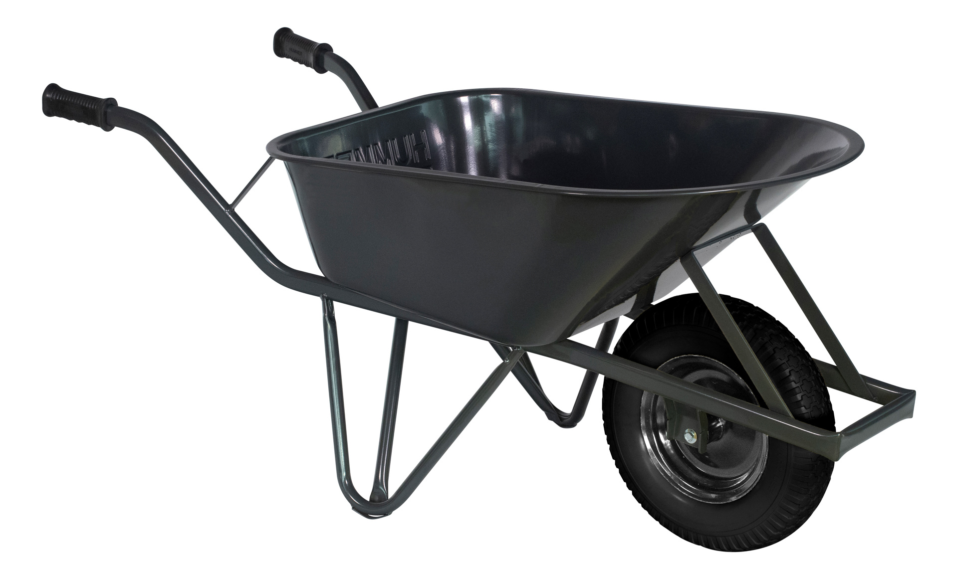Rondneus stalen bak van 85 liter. Volledig gelast frame van grijs gecoate ovale buis, voorzien van slijtsloffen en foamgrip handvatten. Wiel 400×8 4ply met metalen velg, kogellagers en binnenband. Kruiwagen is volledig gecoat in RAL 7016.