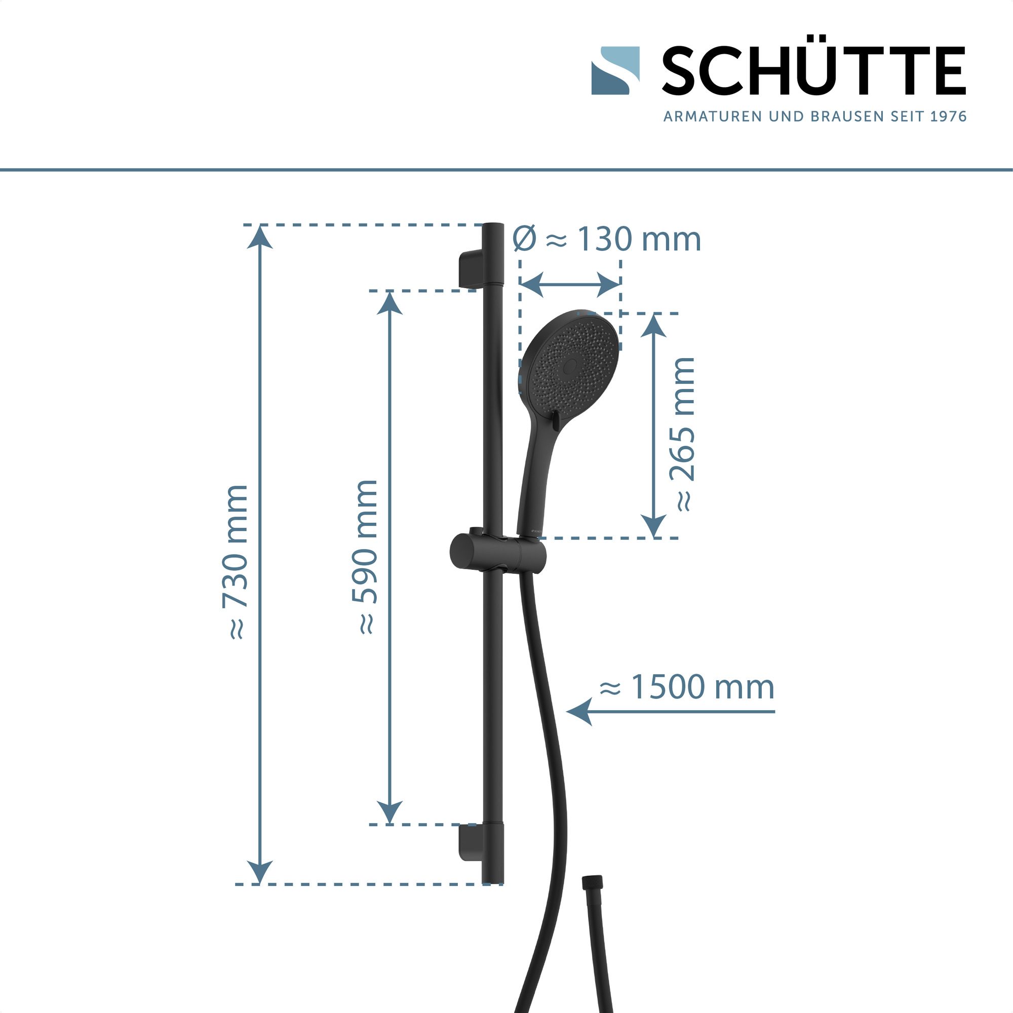 CAPRI doucherail set, mat zwart • 3 straalsoorten • met fluwelen straaltechniek • Afmeting: Ø ca. 12 cm • antikalk nozzles • ½” (Ø ca. 1,9 cm) verbinding voor doucheslang • RVS douchestang • knikbestendige kunststof doucheslang in mat zwart • lengte: ca. 150 cm • Bespaar tot 50% water (vergeleken met een standaard handdouche met een debiet van 16 l/min bij een debietdruk van 3 bar) • Garantie: 5 jaar