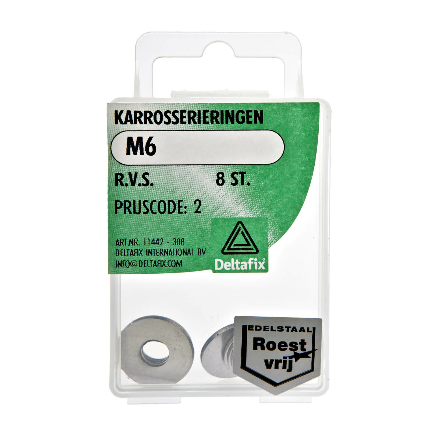Carrosseriering, ook wel rondel of revet genoemd. Deze ringen van roestvaststaal kwaliteit A2 worden in combinatie met bouten en moeren gebruikt. De carrosseriering zorgt voor een betere drukverdeling op het matieriaal. De diameter van de ring is ongeveer driemaal de grootte van het gat in de ring.Carrosserieringen zijn verkrijgbaar in verzinkt staal (DIN 9021) en roestvaststaal A2 (DIN 9021A2)