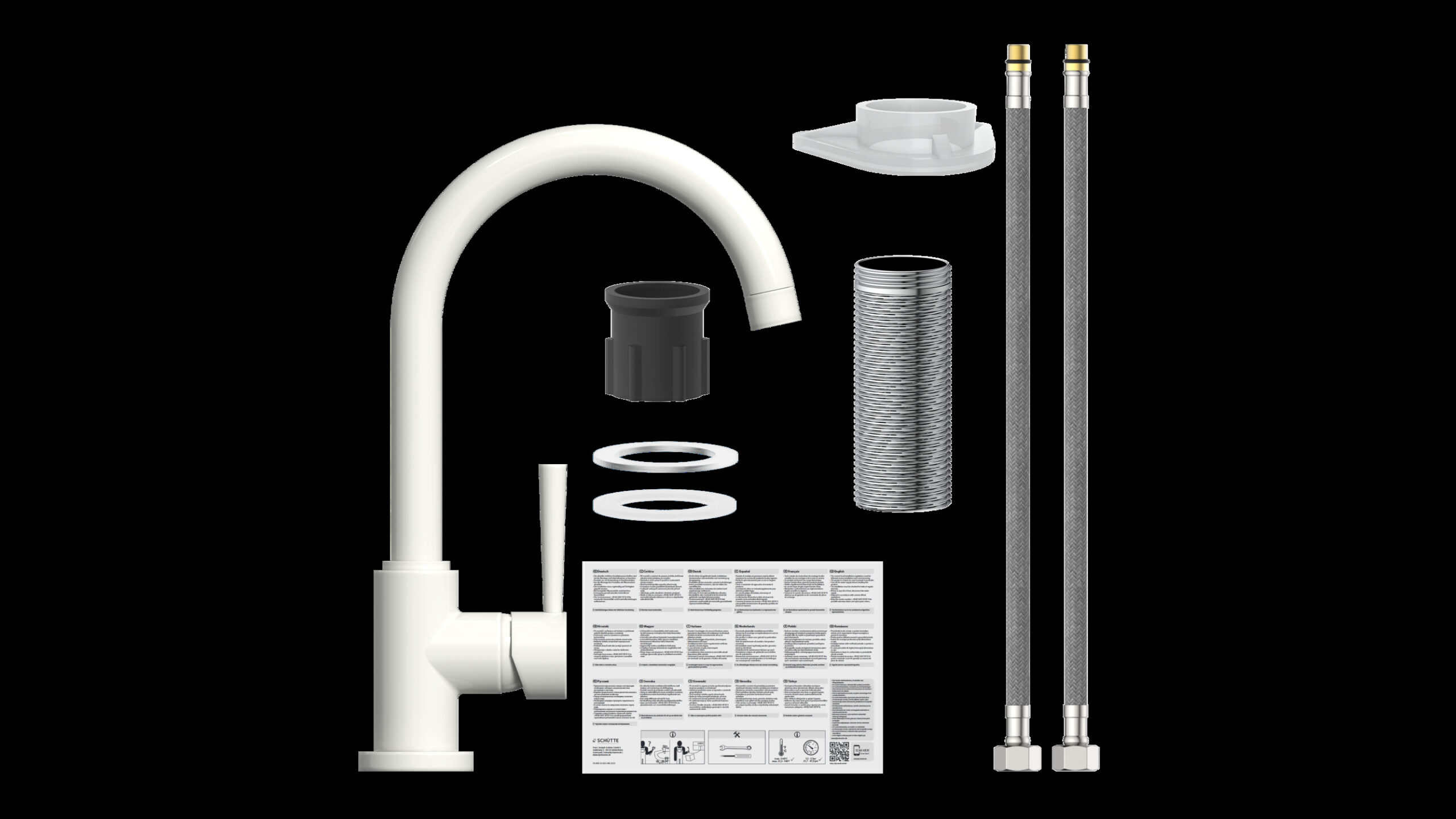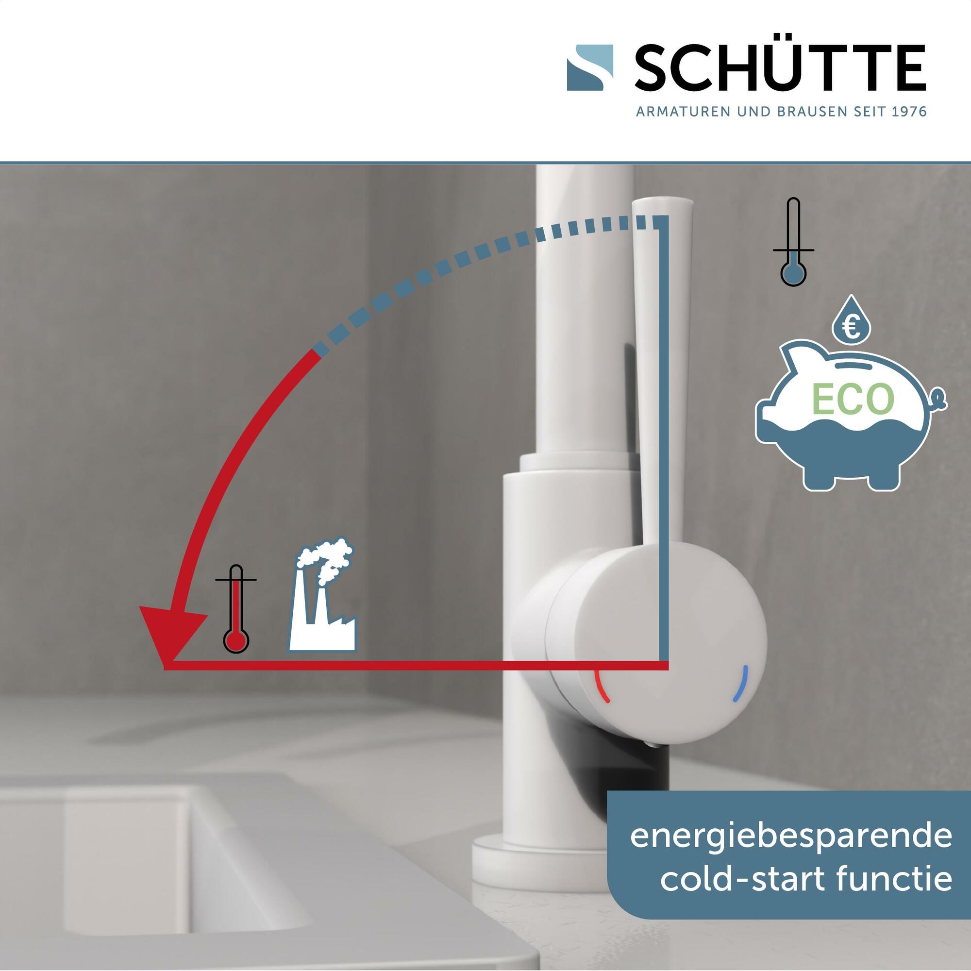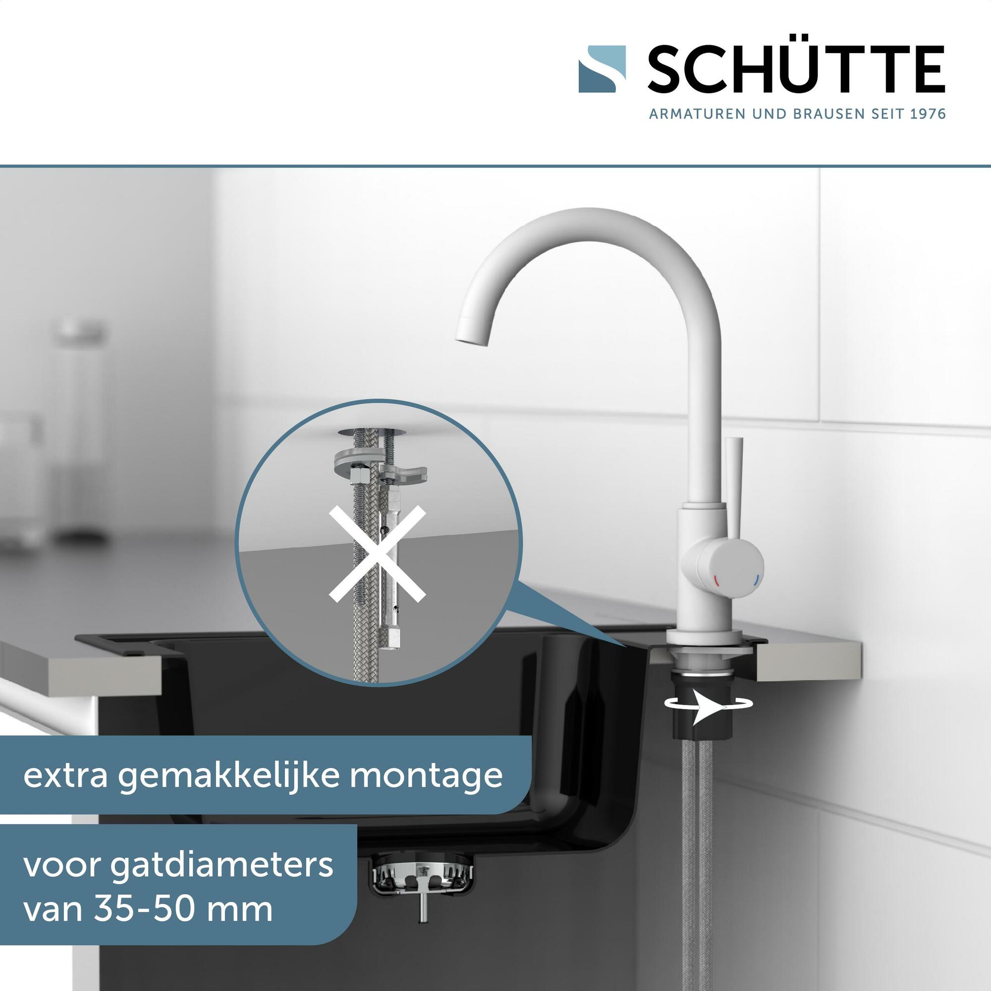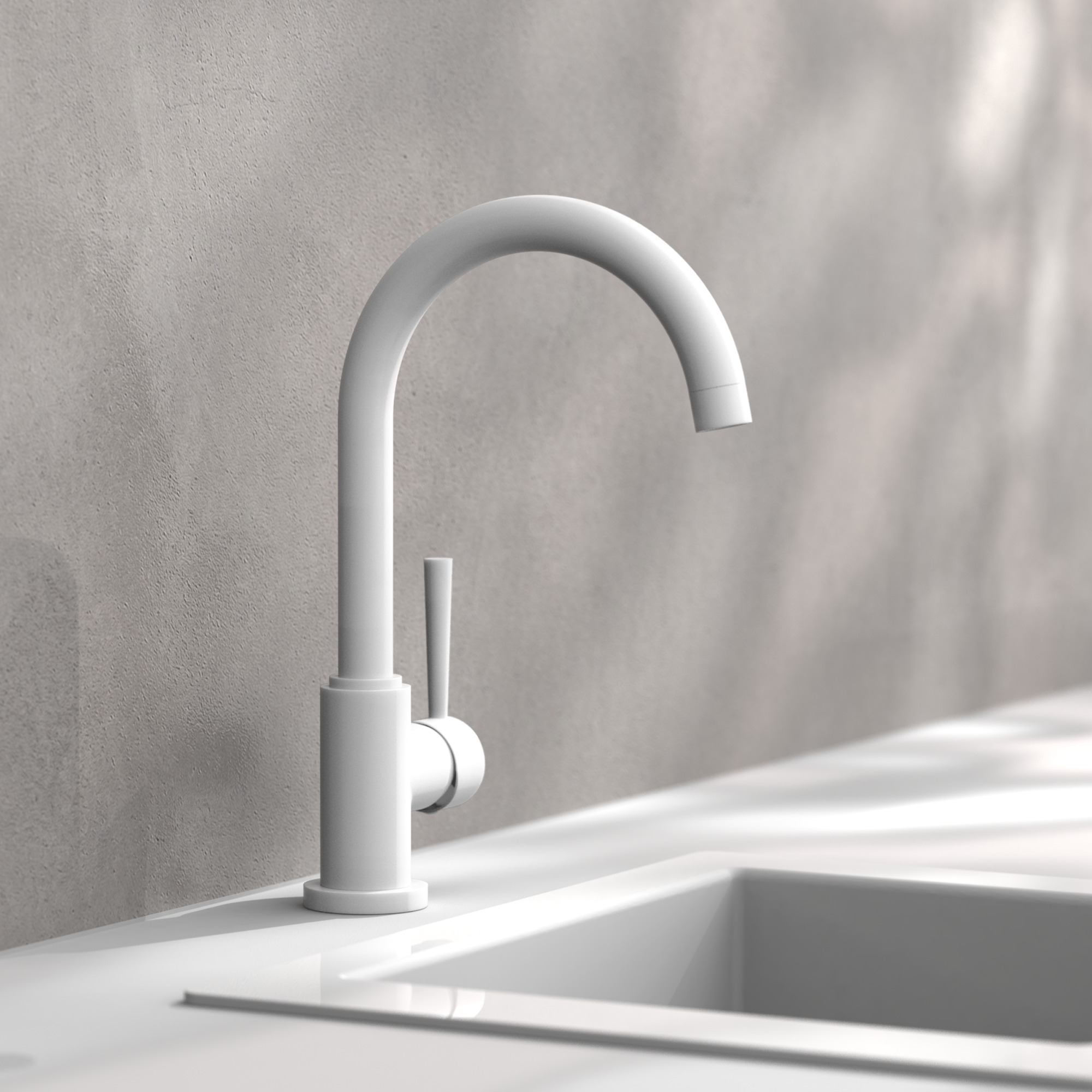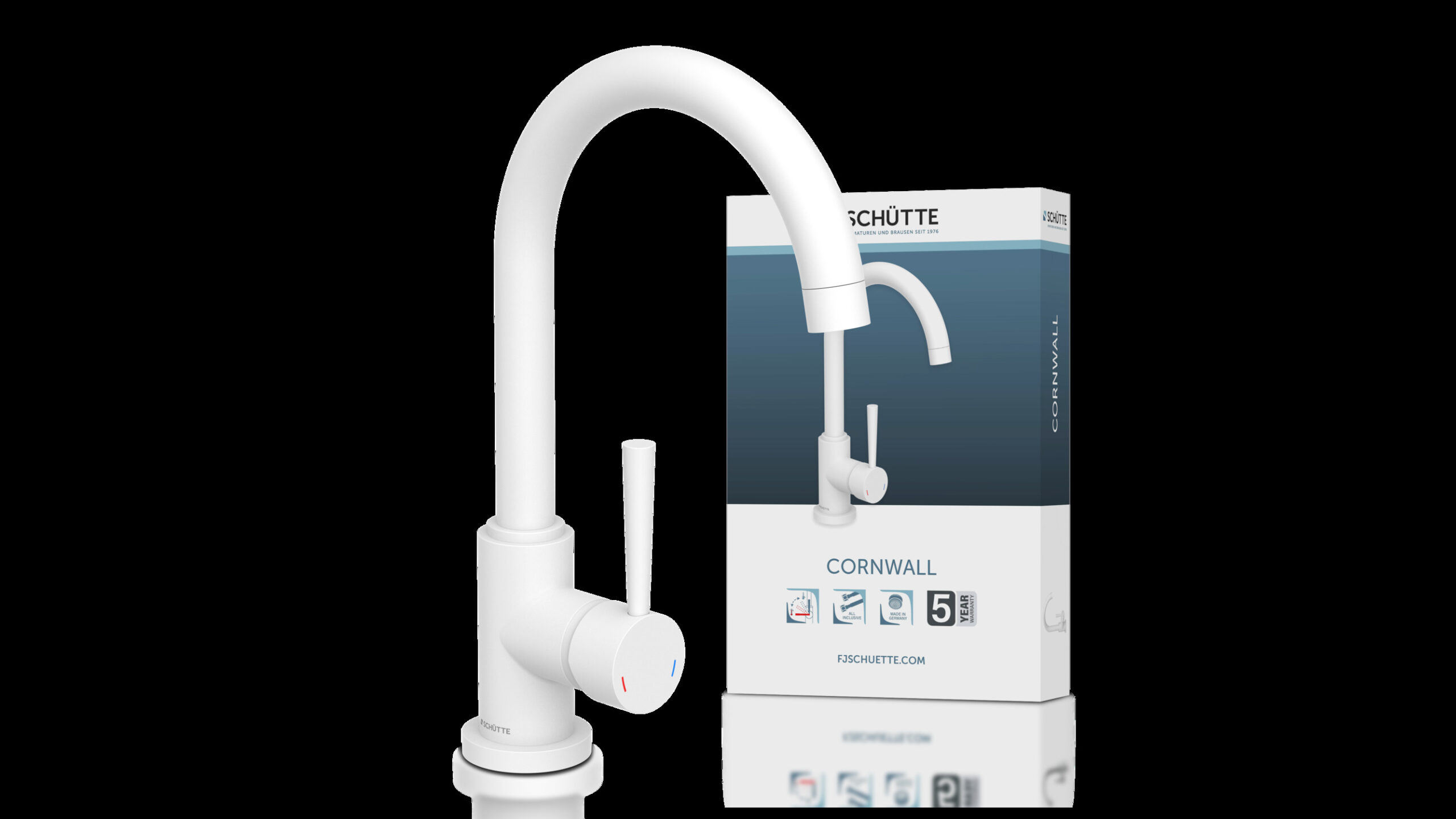 CORNWALL Keukenkraan, mat wit • praktische cold-start functie om energie te besparen • 360° draaibare uitloop • geluidsarme, uitwisselbare 35 mm keramische cartridge • extra eenvoudige montage door centrale bevestigingsmoer • flexibele aansluitslangen ca. 500 mm • merk straalregelaar voor een perfect straalbeeld • Garantie: 5 jaar