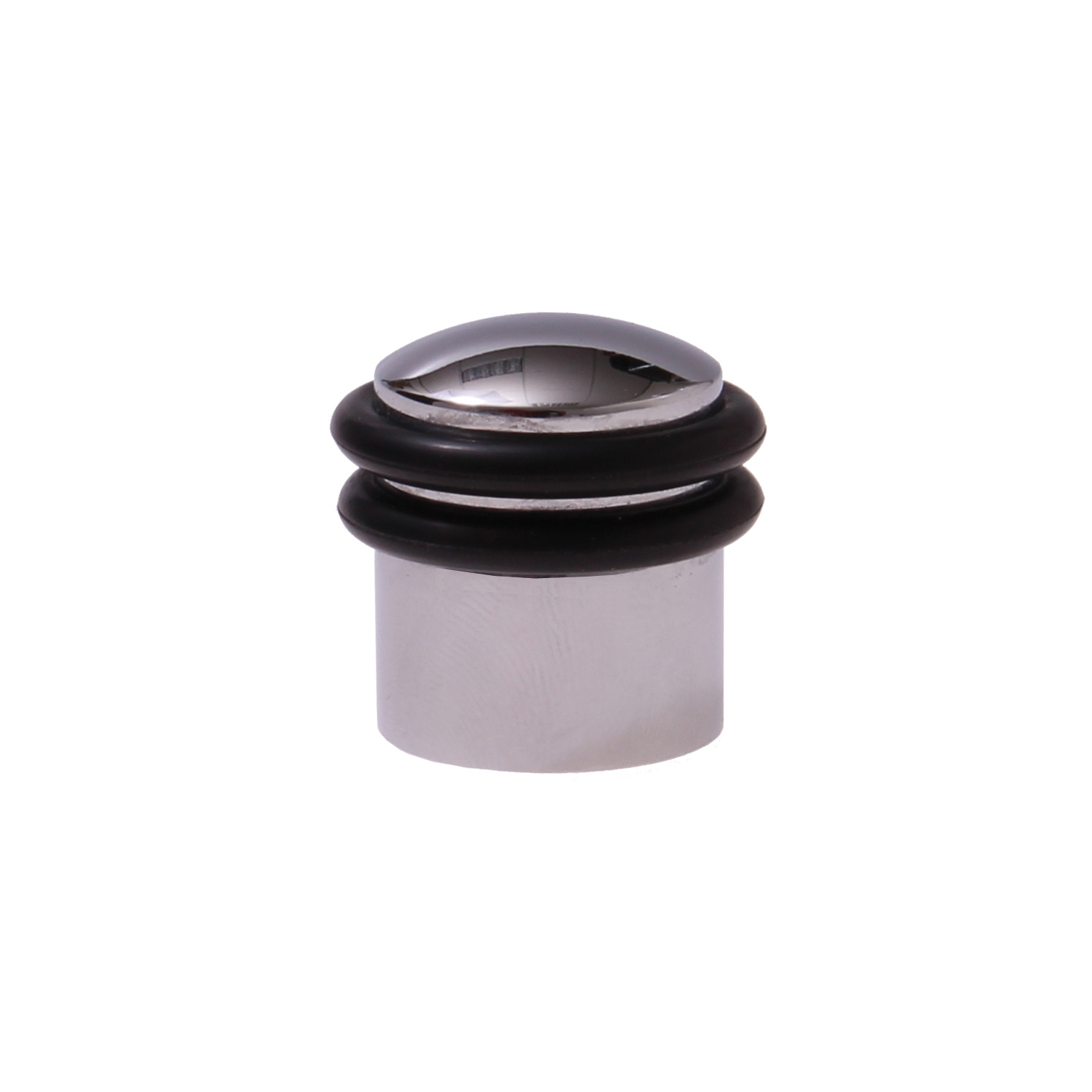 Schroefbare, verchroomde deurstopper met rubber ringen en een rubberen zool om schade aan deur en muur te voorkomen.