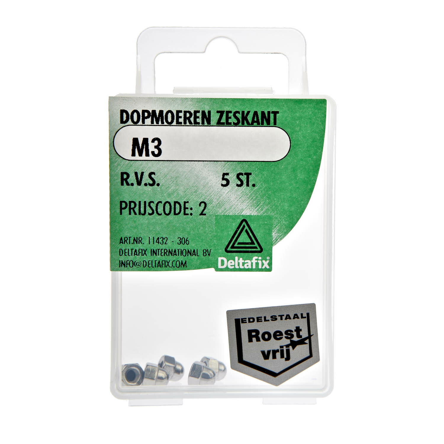 DOPMOER ZESKANT RVS A2 M3 DIN 1587 5ST