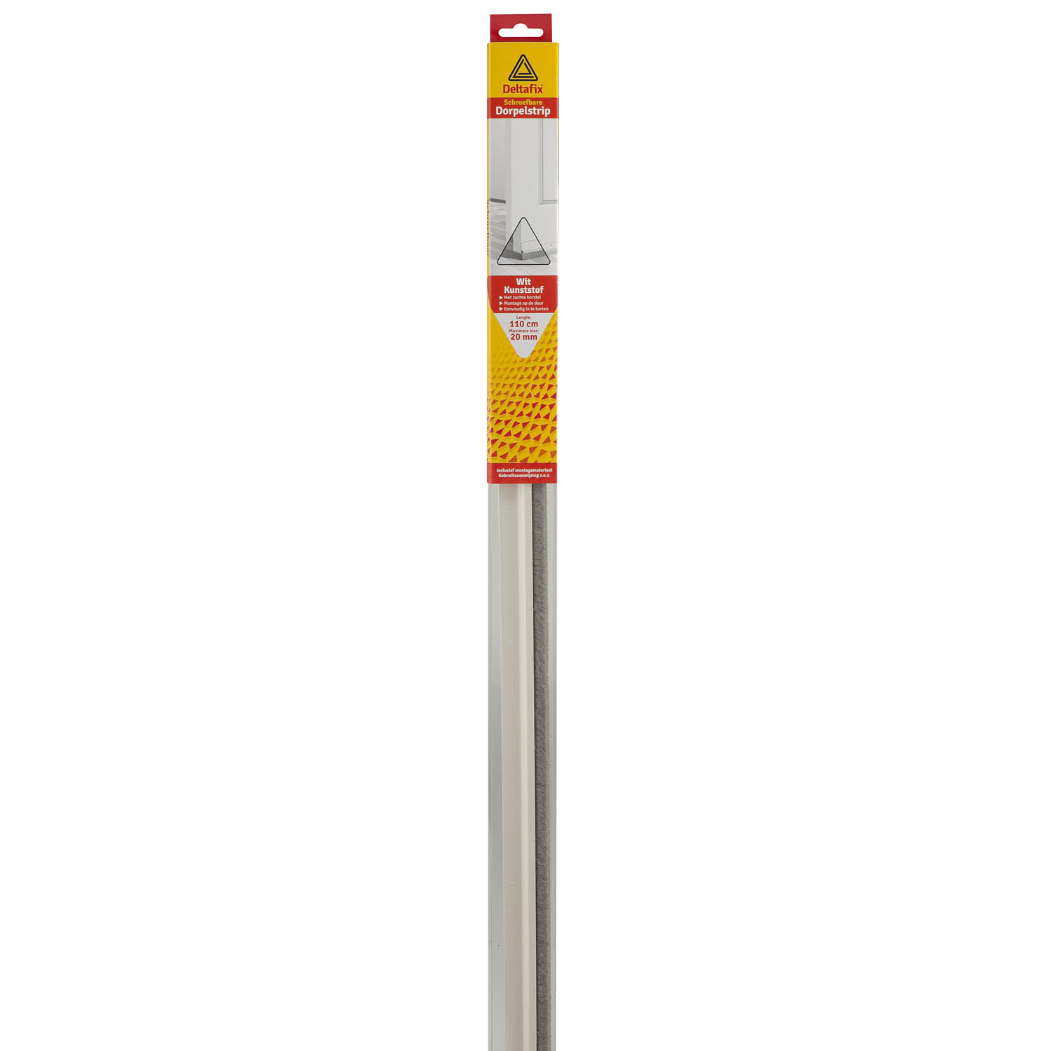 DORPELSTRIP MET BORSTEL SCHROEFBAAR WIT KUNSTSTOF 1.10M X 40 MM X 20 MM