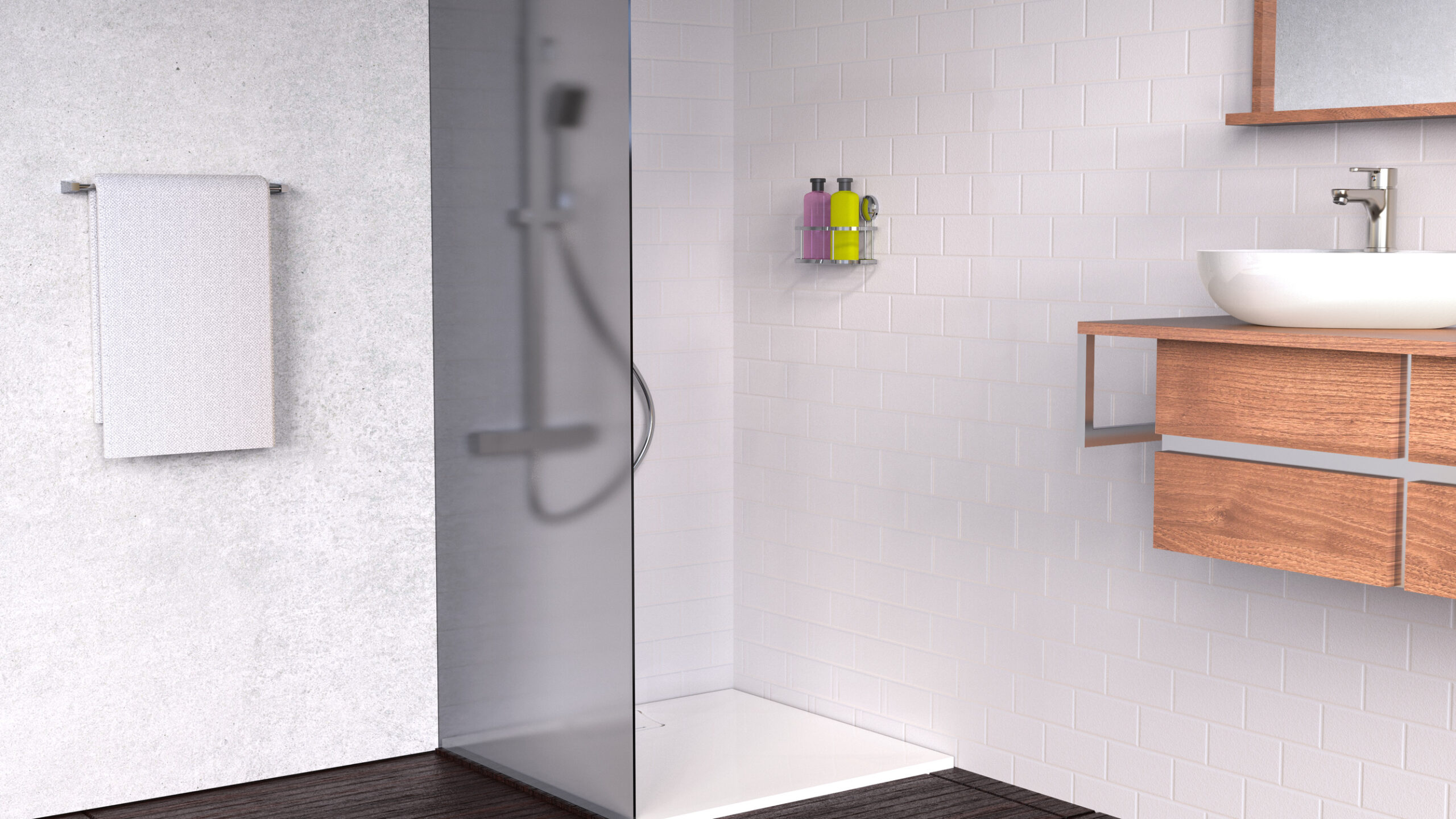 DOUCHE WANDPLANCHET, CHROOM, OM TE LIJMEN OF SCHROEVEN