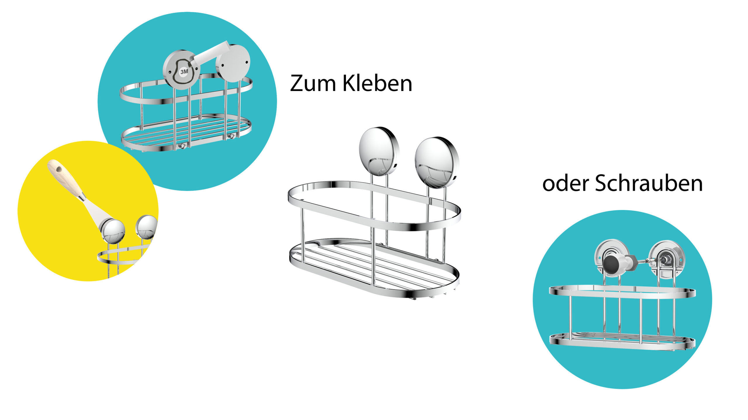 Douche wandplanchet, chroom, om te lijmen of schroeven • douchemandje • om te lijmen of te schroeven • geen boren en geen extra bevestigingsmateriaal nodig • max. 25 kg • materiaal: RVS, verchroomd • Garantie: 2 jaar