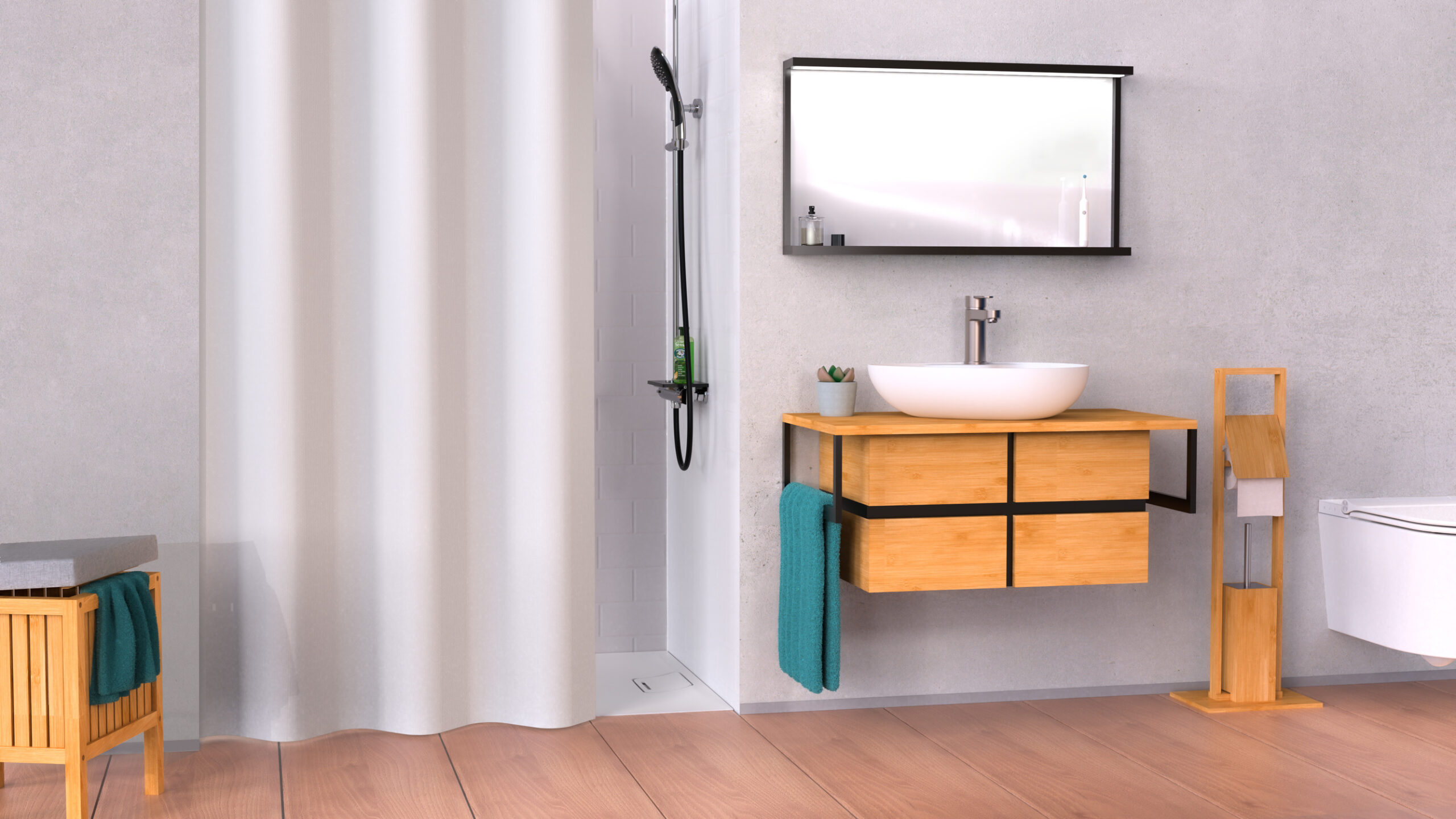 Douchegordijn, wit • 180 x 200 cm • waterafstotend • met anti-schimmel coating • hygiënisch en gemakkelijk te reinigen • materiaal: 100% polyester, kunststof oogjes + polyester • Garantie: 2 jaar