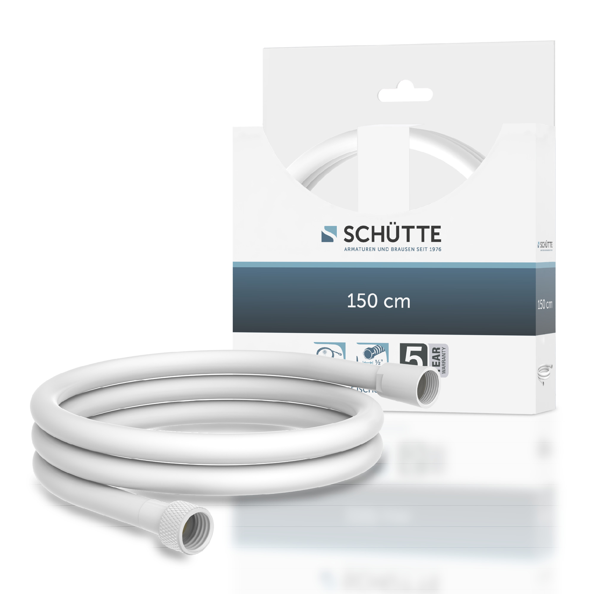 Doucheslang 150 cm, mat wit • ½” (Ø ca. 1,9 cm) aansluitingen • lengte: ca. 150 cm • incl. waterbesparende afdichting • Garantie: 5 jaar
